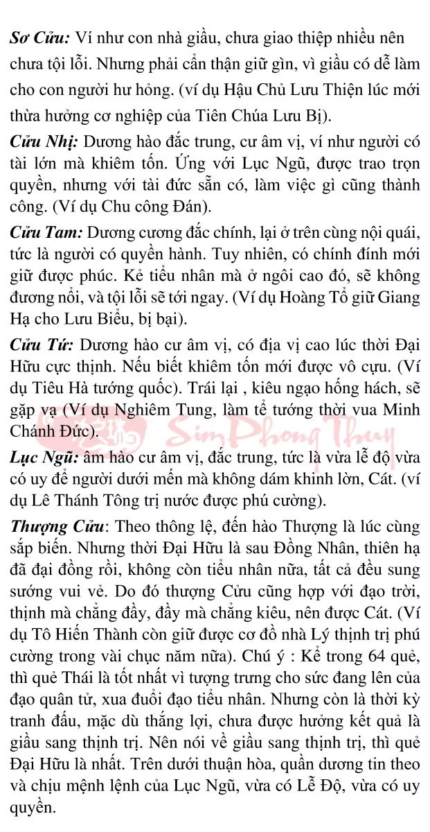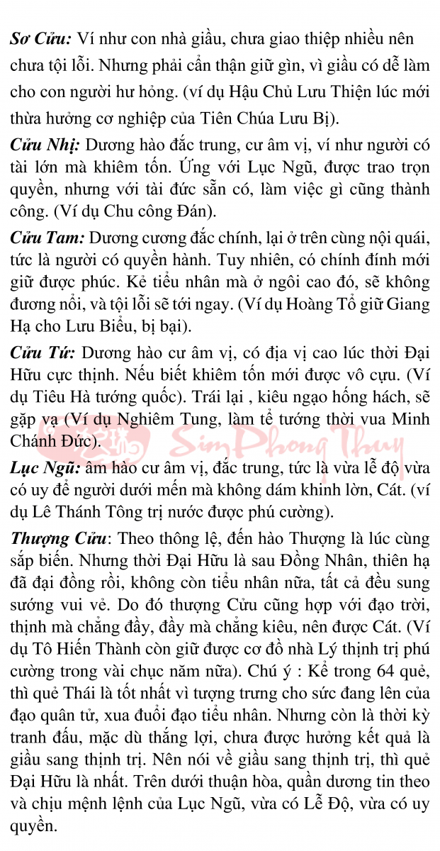 3. Ý nghĩa sáu hào quẻ Hỏa Thiên Đại Hữu
