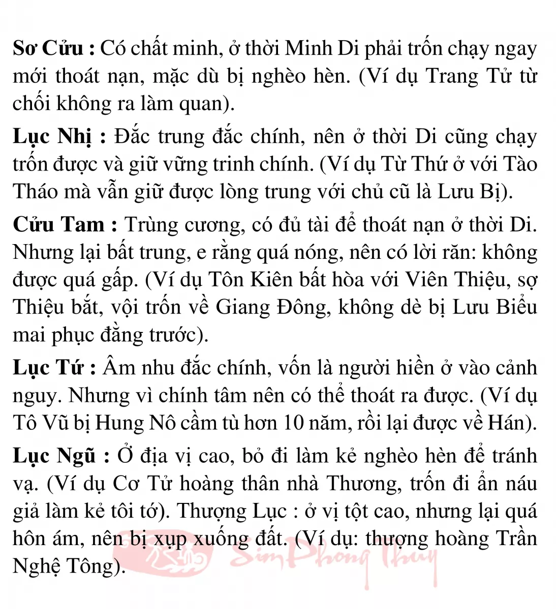 Giải nghĩa: Minh Di tức là thương đau, tổn hại, ánh sáng bị chôn vùi tầng sâu, lợi gian trinh.