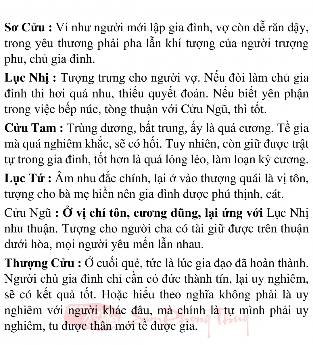 3. Đặc điểm của sáu hào thuộc quẻ số 37 Phong Hỏa Gia Nhân