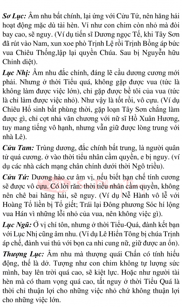 3. Dự đoán ý nghĩa quẻ số 62 Lôi Sơn Tiểu Quá theo hào quẻ
