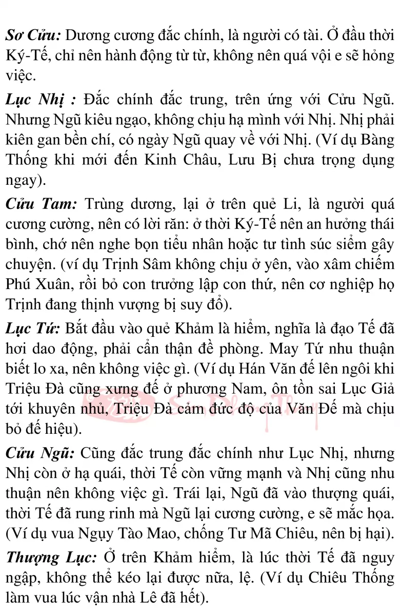 3. Phân tích ý nghĩa từng hào trong quẻ Thủy Hỏa Ký Tế