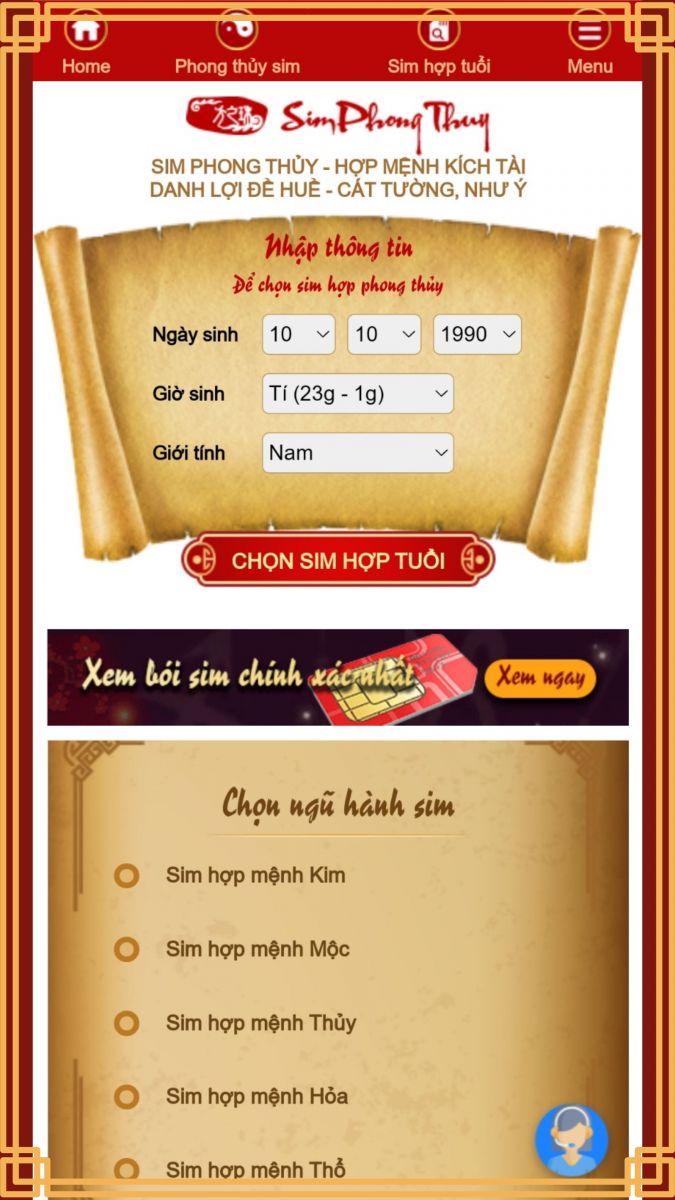- Xác định ngũ hành nạp âm của người sử dụng sim (bản mệnh gia chủ)