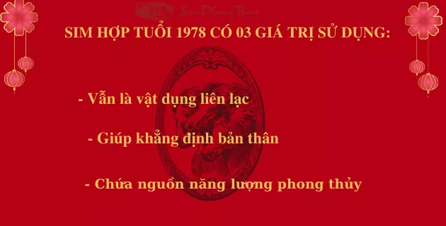 - Sim cũng sở hữu những yếu tố phong thủy phù trợ, kích hoạt năng lượng tốt lành thúc đẩy mong muốn dự định công việc của người tuổi 1978.