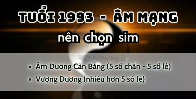 + Về âm dương: Năm Quý Dậu là năm mệnh Kim Âm (Kiếm Phong Kim - Âm mạng) nên chọn dãy sim hợp tuổi 1993 âm dương cân bằng là tối ưu nhất, hoặc có thể dùng sim vượng dương giúp giảm Âm khí trong mệnh tuổi Quý Dậu.